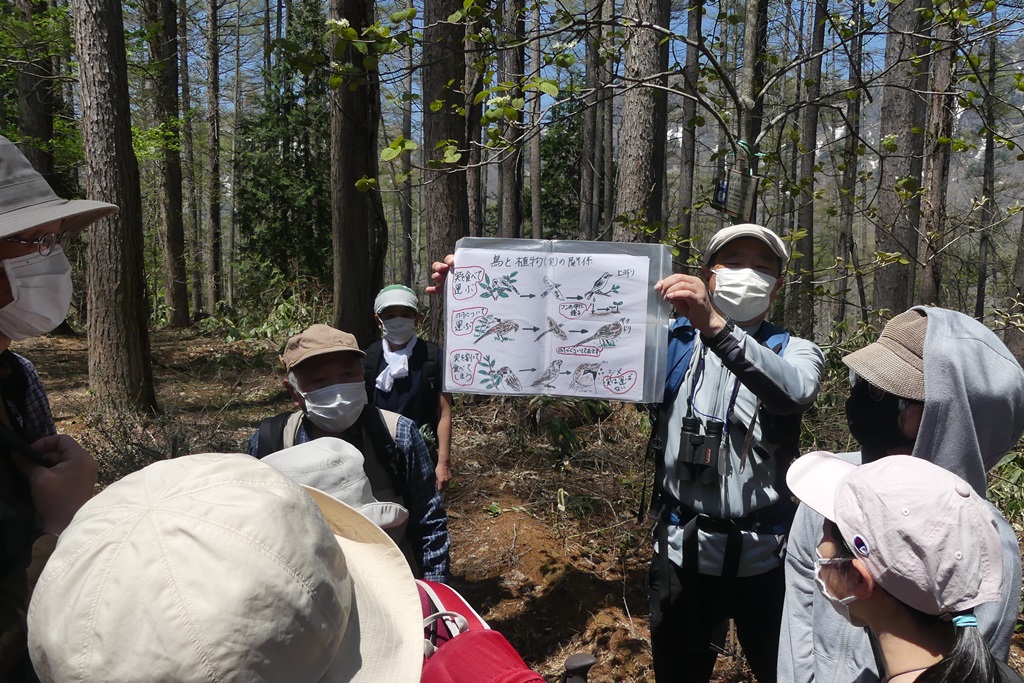 同植物園は「野鳥の森」としても有名です。この日も大きな望遠レンズカメラを担いだ野鳥愛好家の皆さんが訪れていました。私たちも野鳥観察が主目的でしたが、「さえずりは聞こえども姿は…」でなかなかでした。鳴声から「ゴジュウカラ」「ミソサザイ」「キビタキ」「コガラ」などと紹介してもらうのですが、写真に収めることはほとんどできませんでした。妻は双眼鏡で観察できたようですが、望遠カメラで追いかける私はから降りです。今年は「まだ野鳥が少ない」とのことです。野鳥の写真撮影は一カ所でひたすら待ち続ける、忍耐力が勝負のようです。