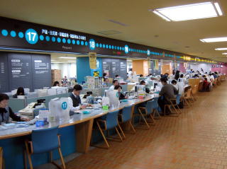 このカウンターが総合受付窓口。ワンストップサービスが行われている。