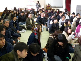 訓練に参加した日赤看護専門学校の学生に声をかけ感想を聞いた。「大規模な訓練でビックリ。ボランティアで学生全員が参加してる。看護師としていい経験になると思って参加した。戦争に備えた訓練?そんな話は学校からは聞いていないけど、サリンは怖いし…。でも戦争は嫌だよね」との言葉が返ってきた。