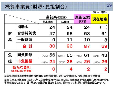 (2)建設事業費、現在地で18億円縮減に、将来負担少ない現在地案
